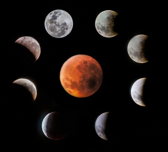 --14hThis is a composite image showing the progression of moons during the blood red full moon eclipse on 8 September 2025, shot north of Canberra, Australia. Starting with the full mineral moon at top left, then progressing clockwise as the eclipse progressed, the sixth image (at the bottom left) was the last of the eclipsing moons. That was followed by the blood moon (centre). When the cloud lifted, the final two images (left side) showed the progression back to the full moon.