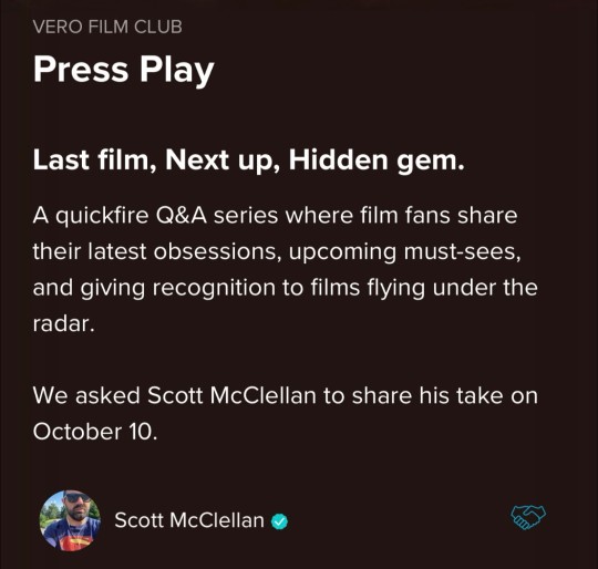 --Oct 14I’m the featured User (that’s a Tron pun btw 😎) on this week’s #verofilmclub #PressPlay feature! Check it out on the Featured page to see what I had to say about movies I’ve seen and what I planned to see.